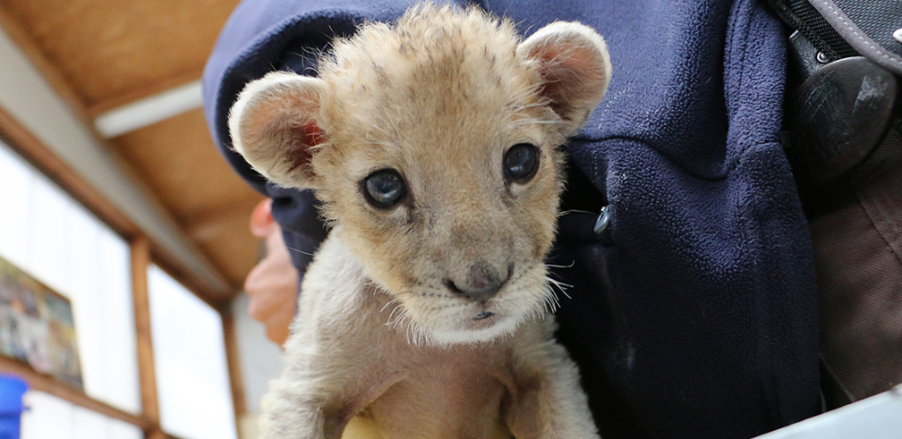 - Le premier lionceau est un mâle âgé de 2 mois qui a été trouvé dans un appartement en banlieue parisienne et qui nous a été confié jeudi 25 octobre 2018. Son propriétaire souhaitait le vendre ; il a été condamné à 6 mois de prison et 2000€ d'amende.