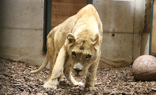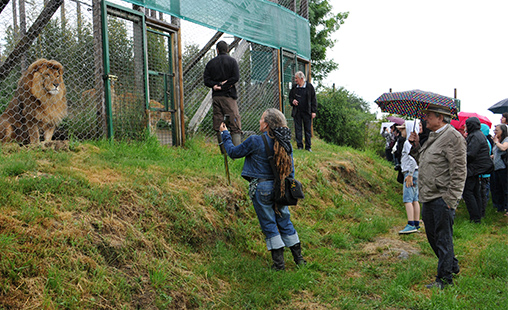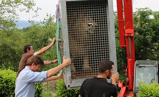 Arrivée d'un lion famélique, confié par l'association One Voice après une saisie dans un cirque.