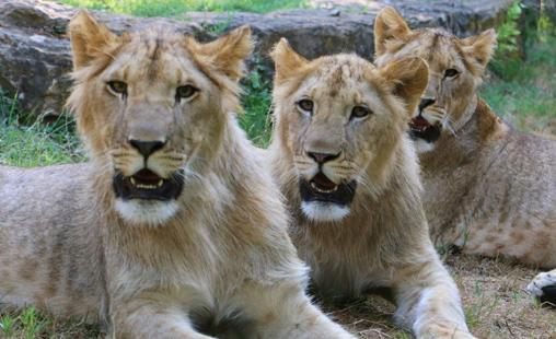 Les trois lionceaux recueillis en janvier placés dans l'enceinte de l'Espace Zoologique jusqu'à leur départ !