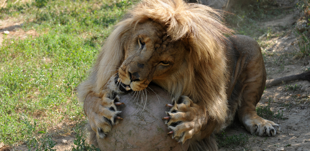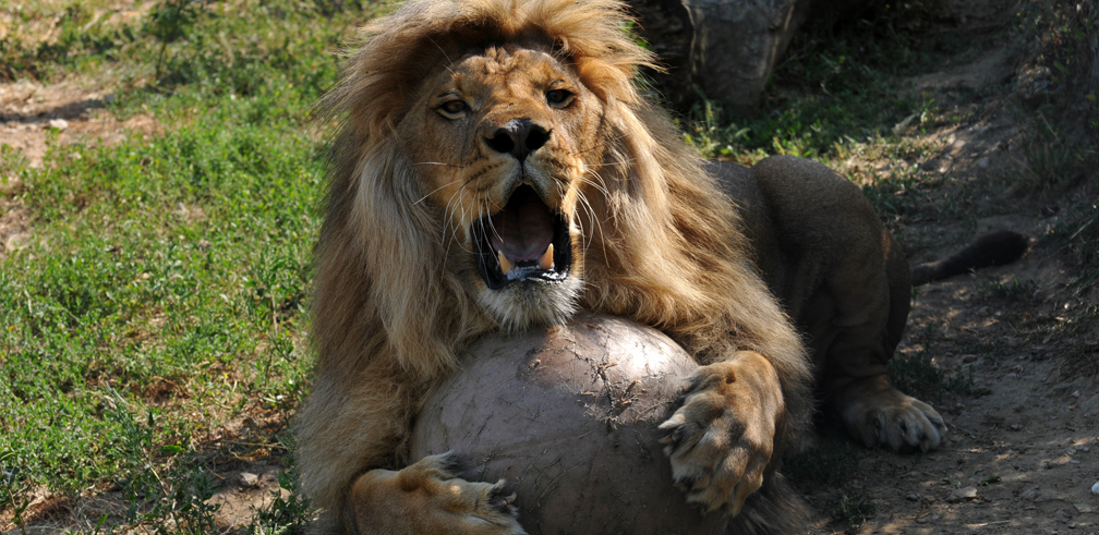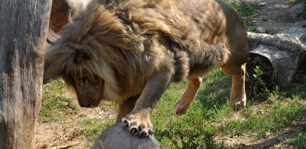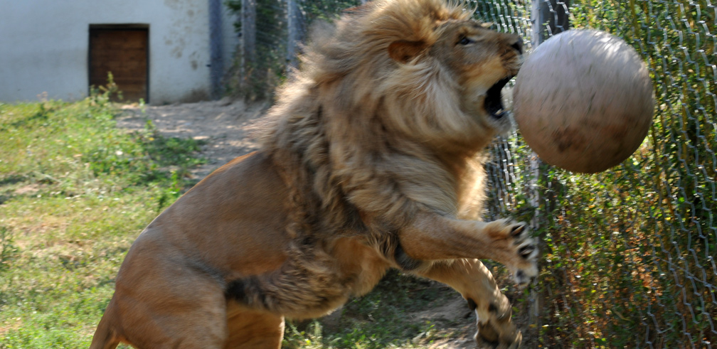 Il faut tout de même préciser que la boule avec laquelle joue Masaï pèse plusieurs kilos et on peut constater avec quelle facilité il la projette dans les airs, c’est dire la puissance d’un tel animal, qui est pourtant encore bien jeune.