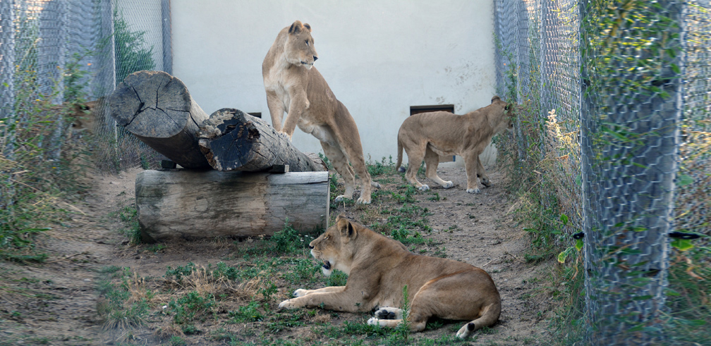 Le 29 mai dernier, notre équipe s’est rendue en Bretagne pour prendre en charge quatre lions, un mâle et trois femelles, âgés d’environ une dizaine d’années, ces derniers se trouvaient dans un établissement itinérant. Ils sont en bonne santé et ont été bien traités par leur ancien propriétaire, qui a décidé de nous les confier car il ne souhaitait plus travailler avec des animaux sauvages. Ils ont été placés dans le troisième enclos du bâtiment 4.