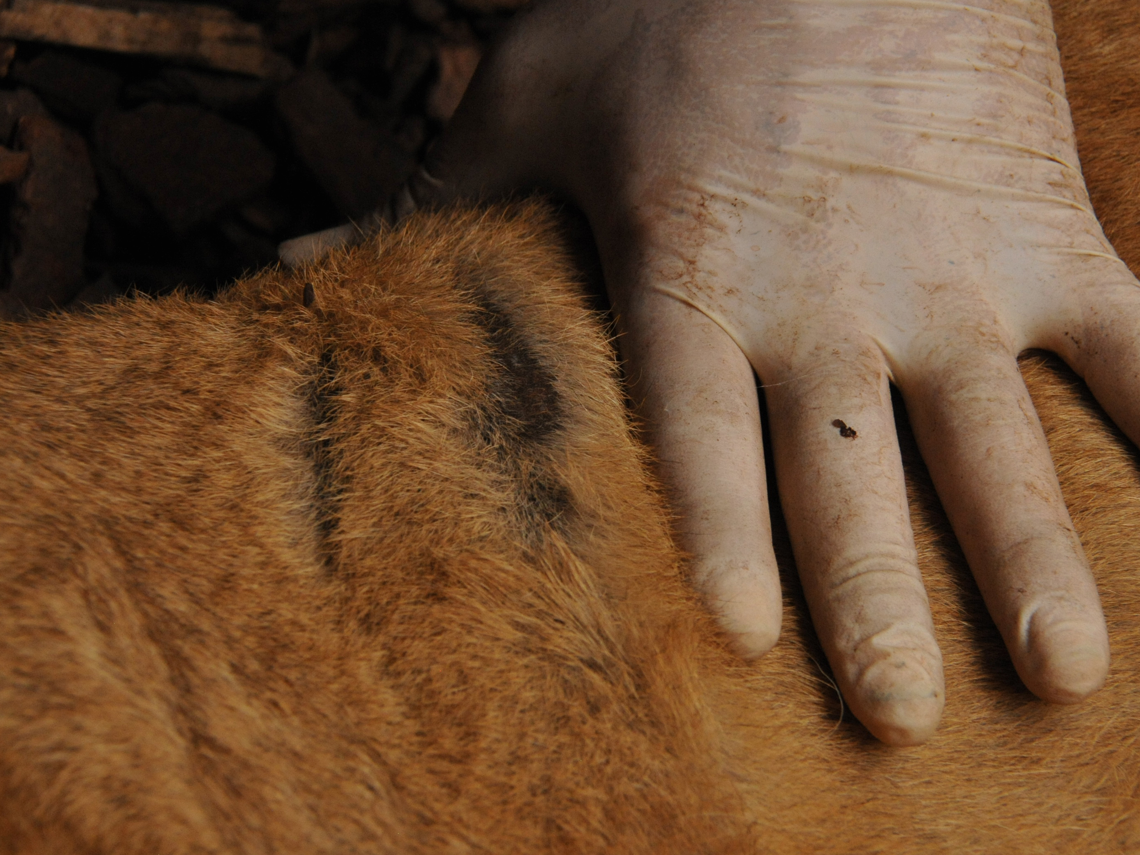 Leurs corps présentent de nombreuses blessures et cicatrices. La queue de Céleste, blessée à la pointe, a été nettoyée. Comme cela avait été constaté à leur arrivée chez nous, Céleste a bien été dégriffée sur ses pattes avant. Il s’agit également de la seule lionne non identifiée par une puce électronique. Le puçage est une formalité administrative obligatoire, nous procèderons donc à son puçage.