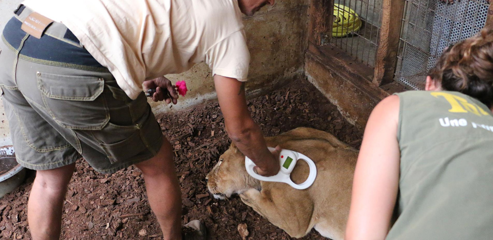 Afin d'effectuer son chargement dans sa caisse de transport, Persy a été anesthésiée. Elle a ensuite été pucée, vermifugée et mise sous implants avant d'être placée dans sa caisse par les soigneurs de Touroparc et de Tonga. Nous espérons que la présentation avec son nouveau compagnon se passera bien et qu'elle appréciera son nouvel enclos !