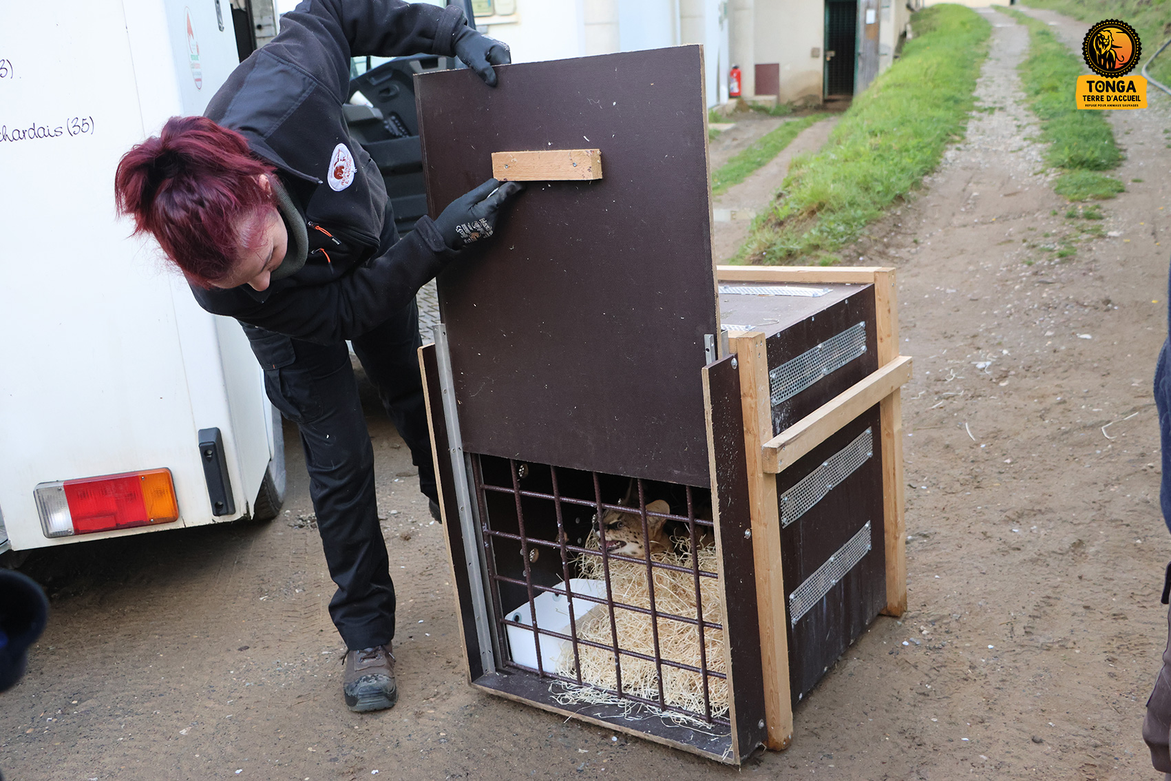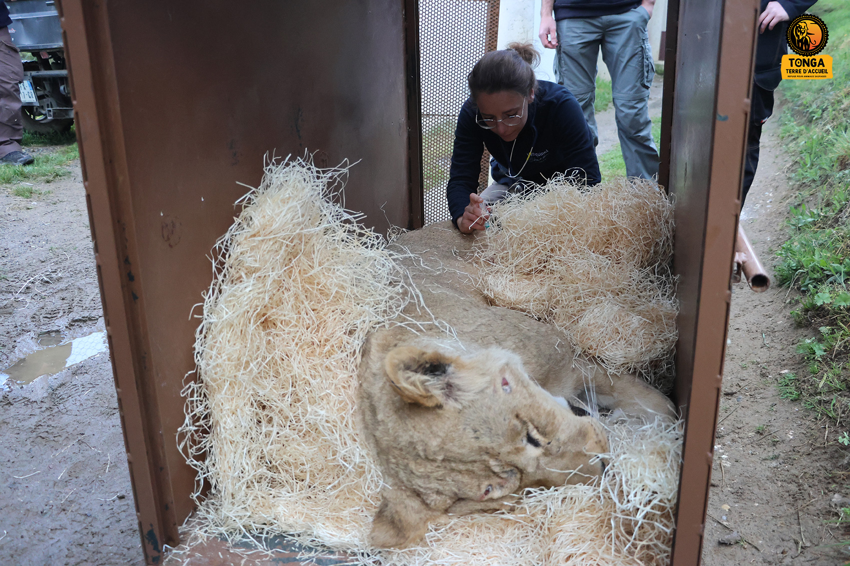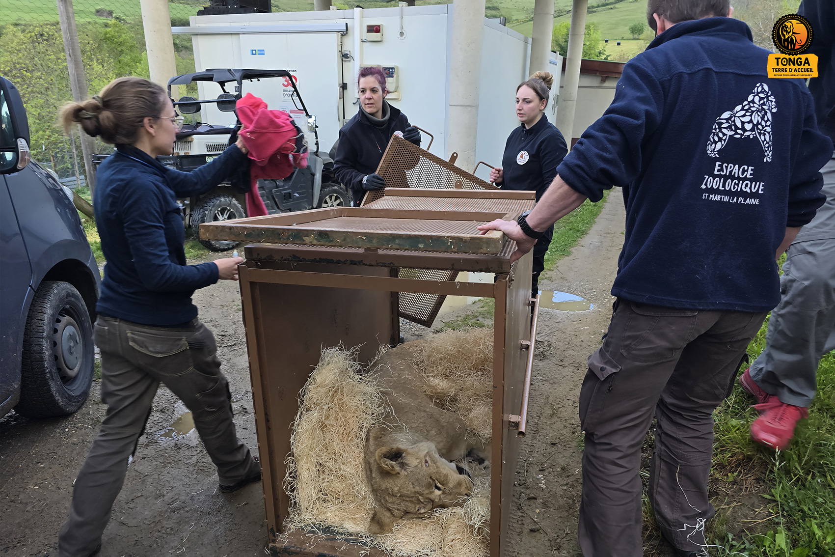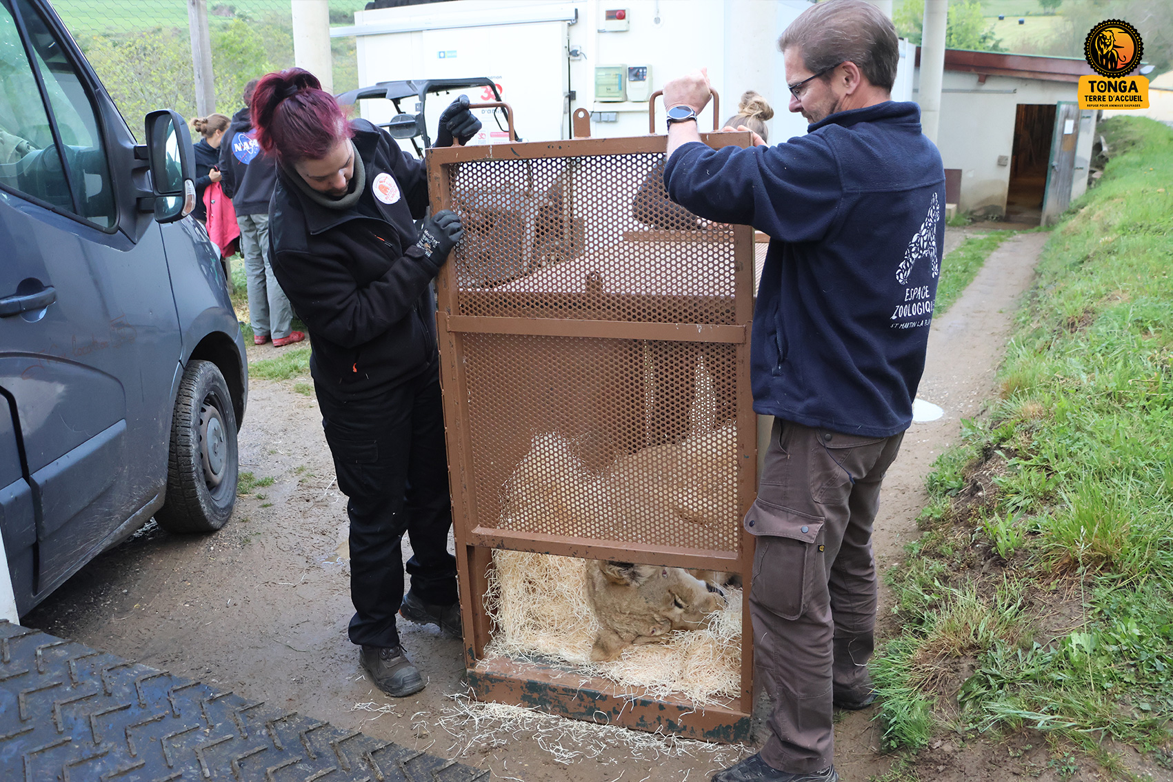 Arrivée il y a deux semaines à peine, la lionne Mérani part pour le Refuge de l'Arche, où une place l'attend. Elle sera présentée à Safran et Lina, un mâle et une femelle déjà passés par notre refuge il y a quelques années.