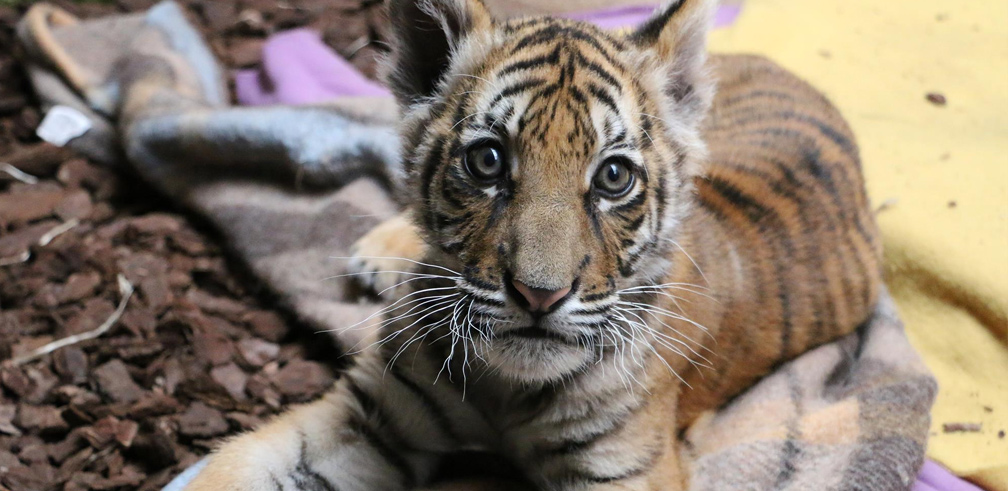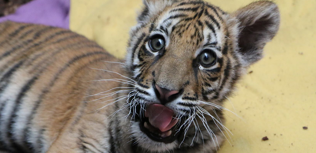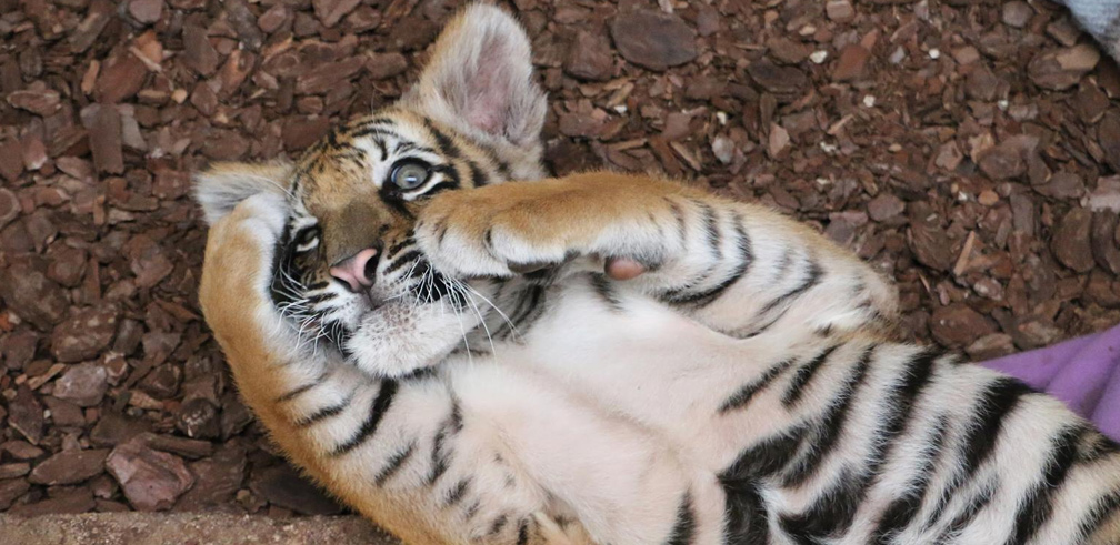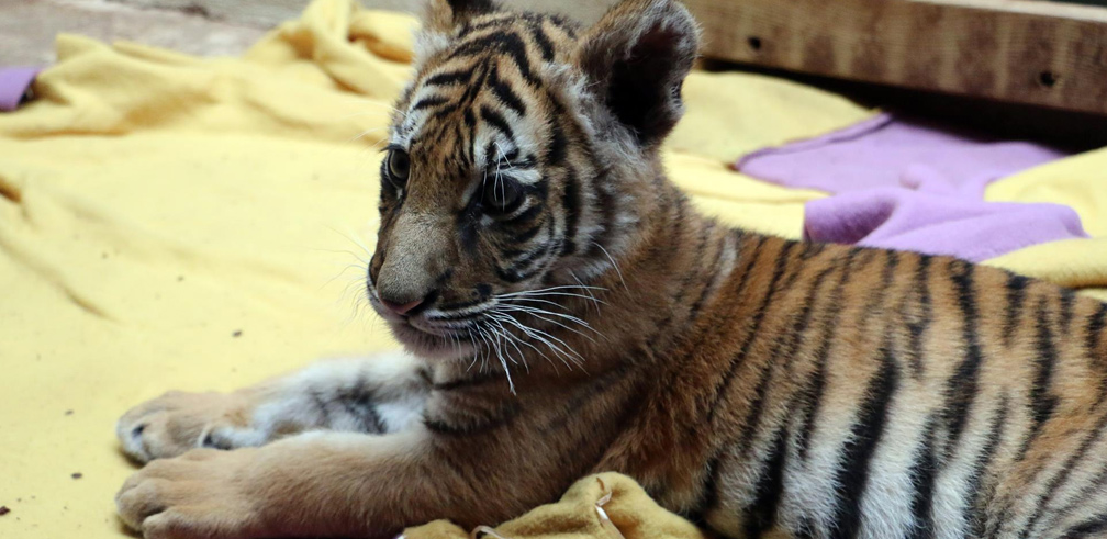 Arrivé samedi 18 juin 2016 à Tonga Terre d'Accueil, ce petit tigre mâle était utilisé par des dealers de la région parisienne pour se faire de l'argent grâce à des selfies. Il a été retrouvé dans une caisse en Seine Saint Denis.